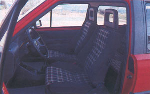 Los asientos delanteros, del tipo “baquet”, similares a los del Kadett GT E, ofrecen excelente sujeción lateral, buen confort y fácil reglaje. El único inconveniente se deriva de lo poco que se abaten hacia delante los respaldos, entorpeciendo un tanto el acceso al asiento posterior. El tapizado de los asientos es de un tacto muy agradable y de suficiente agarre.