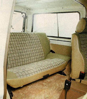 Con los años también se han ido introduciendo mejoras en la carrocería, sobre todo en pequeños detalles, que hacen más agradable la utilización día a día. Sin duda, lo que más se ha notado ha sido la evolución de los asientos. Inicialmente eran totalmente planos, y el conductor y sus acompañantes bailaban al ritmo de los baches del camino. Ahora los asientos tienen un mullido apropiado y una forma que recoge el cuerpo mucho mejor. Los cinturones de seguridad también funcionan mejor puesto que en las zonas bacheadas sujetan el cuerpo contra el asiento, para evitar que el conductor salte. También se han previsto asideros para las plazas traseras, y toda una serie de pequeños detalles. No obstante, creemos que este modelo exigía una presentación tanto exterior como interior caracterizada deportivamente, aunque fuese opcionalmente.