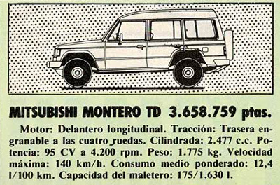 MITSUBISHI MONTERO TURBO D/NISSAN PATROL 6 CIL. CORTO/RANGE ROVER VOGUE EFI/SUZUKI SANTANA SJ410/LADA NIVA 4X4/TOYOTAL LAND CRUISER TURBO DIESEL LX/MERCEDES 280 GE SW LARGO/LAND ROVER SANTANA 88 SUPER