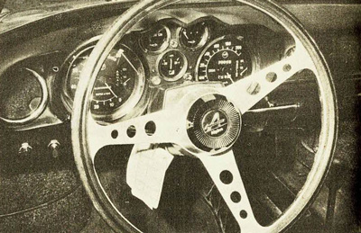 La caja de cambio en bloque con el diferencial, desde el que parten los semiejes de tracción a las ruedas posteriores, es de cuatro velocidades, con relaciones de desmultiplicación muy bien estudiadas y todas sincronizadas. El grupo diferencial se sirve con la desmultiplicación 9 X 34, que resulta algo largo y por lo cual se tarda en llegar a la velocidad máxima en directa, pero opcionalmente se puede servir un grupo más corto de un diente más en la corona —9 X 35 — con el que se obtienen mejores aceleraciones, aunque la velocidad máxima sea algo menor, pero a cambio llegue a conseguirse antes que con el grupo normal. Lo que echamos de menos es una quinta velocidad, para obtener un mejor empleo de la potencia disponible, entendiendo que cuando se trata de un coche deportivo, es a todas luces casi exigirle la caja de cambio de cinco marchas. La buena elasticidad de este motor, hace que se olvide un poco esta omisión.