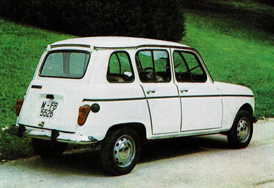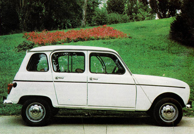 El R-4 apareció en el año 1961 y cuenta, por tanto, con veintidós años de vida, habiendo sufrido realmente pocas modificaciones, más bien de detalle y de adopción de motores cada vez más eficientes o de mejores rendimientos, aunque también bajo este aspecto los cambios han sido en poco número. Pero el R-4 ha sido un “coche hito” en la marca francesa, por cuanto con él debutaba la marca en la tracción delantera, que ya no habría de dejar en ninguno de sus modelos, y sobre todo iniciaba el auténtico dos cuerpos —uno para el motor, otro para el habitáculo/maletero— con el portón trasero, una nueva forma de construcción del automóvil que después habría de ser seguida por muchos otros constructores —por casi todos—, siendo así que no sabemos de otro coche anterior al R-4 que hubiera adoptado tal forma de construcción.