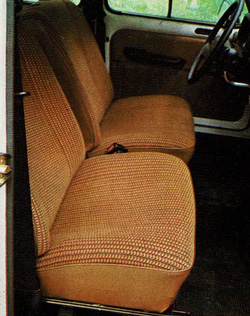 El parabrisas plano es otra razón de economía y lo mismo la simplicidad de los cerrojos y sobre todo de sus seguros, que parecen más bien de ferretería de barrio. Sin embargo, no falta el lavaparabrisas o los limpiaparabrisas de dos velocidades y en cuanto al aireador-calefactor es de mandos realmente rudimentarios, pero no por ello menos prácticos y funcionales. La comodidad de los asientos es buena y los tejidos muy aparentes, con colores y dibujos que convencen, pero demasiado vinilo, que en el verano se muestra un tanto caluroso al no transpirar como es debido.