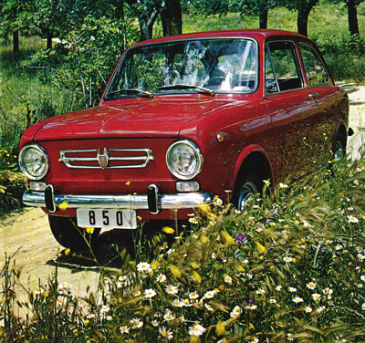 Línea bastante original sin convencer del todo el estilo y las proporciones. El aspecto del «850» es, en conjunto, agradable. Su línea es sencilla a la vez que original. Estos elogios no excluyen, sin embargo, algunos defectos. El frontal está especialmente logrado, con sus característicos faros de gran diámetro y con los adornos cromados. En el centro lleva el escudo de la Seat. La parte de atrás, donde está alojado el motor, es la más característica del «850». En el diseño truncado de la parte posterior se parece al Hillman «Imp» inglés. No convence demasiado la relación alto/ancho, porque da la impresión de ser más alto y estrecho, especialmente visto desde atrás. Respecto a la carrocería puede objetarse también que su parte superior — techo y montantes — no está del todo en armonía con el resto del coche. Son particularmente agradables los colores blanco, azul y rojo.