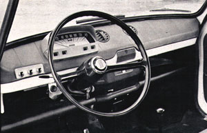 El tablier, totalmente recubierto de plástico negro, elimina los reflejos en el parabrisas. Buena la visibilidad de maniobra hacia adelante y a los lados, pero escasa hacia atrás (el conductor que mira a través del cristal posterior no ve el extremo del coche, y por lo tanto no puede apreciar exactamente el tamaño); afortunadamente, las puertas se abren en el buen sentido, lo que permite sacar la cabeza para ver bien, abriendo un poco la puerta de la izquierda. Buena la cadencia de funcionamiento del limpiaparabrisas, aunque resultaría más eficiente si tuviese las escobillas un poco más largas. La visibilidad nocturna es buena, dado el diámetro de los faros. Las variaciones del campo iluminado, entre el mínimo y el máximo de carga, pueden considerarse bastante satisfactorias.