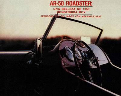 La primera realización de Auto Réplica es el AR-50 Roadster, que se presentará en el próximo Salón del Automóvil de Barcelona y del que ofrecemos una auténtica primicia en estas páginas. Se trata de una versión, fiel al ciento por ciento, del deportivo británico MG TD, que inició su fabricación en 1950, cosechando importantes triunfos deportivos y con una producción total superior a las 30.000 unidades. En su carrocería, el AR-50 Roadster reproduce hasta el más mínimo detalle la línea y elementos del famoso deportivo; su construcción es artesanal, con especial cuidado en la selección de materiales y accesorios, que han sido reproducidos exactamente.
