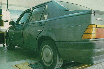 Finalmente, se sustituyeron los amortiguadores, y la cosa cambió como por ensalmo. El comportamiento varió sustancialmente, y durante el resto de la prueba (bastantes kilómetros más), las reacciones ya han sido más propias del Alfa 75: ligeramente subvirador, pero con la posibilidad de sobreviraje al jugar con acelerador y freno.