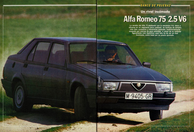 Incluso dentro de las versiones del propio Alfa 75 se produce una dicotomía parecida, al comercializarse simultáneamente dos cuyas mecánicas proporcionan potencias con tan solo un CV de diferencia, 156 CV para el V-6 frente a los 155 CV del Turbo. Aquí quizás las cosas estén algo más claras, ya que el 1.8 Turbo tiene una vocación más claramente deportiva que el V-6, que a nuestro gusto lo situaríamos en un plano intermedio: más burgués que el 75 Turbo y más deportivo que el 90 Q.O.